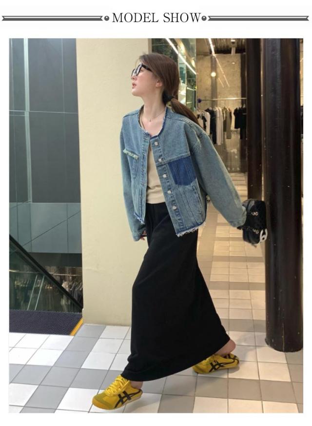 デニムジャケット レディース ノーカラー ジージャン ショートコート 丸首 ダメージ加工 ユーズド加工 アウター おしゃれ gジャン カットオフデニムジャケット お出かけ カジュアル 春 秋 ヴィンテージ アウター 大きいサイズ 送料無料