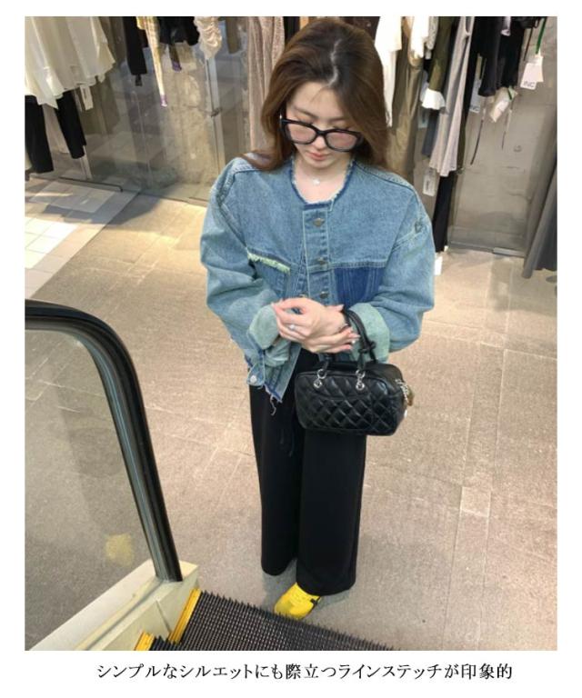 | *ヴィンテージ感漂う、本格デニムジャケット *カットオフが施された襟元がフリンジフリルのような 女性らしい華やかさを演出します *シンプルなシルエットにも際立つラインステッチが印象的 *きれいめスタイルに合わせてこなれ感UP ボトムスとのコーディネートは、ガウチョパンツ・スカンツなどのボリューム感のあるアイテムと相性が良くお勧めです。 | |