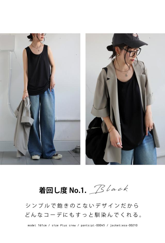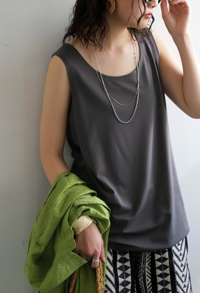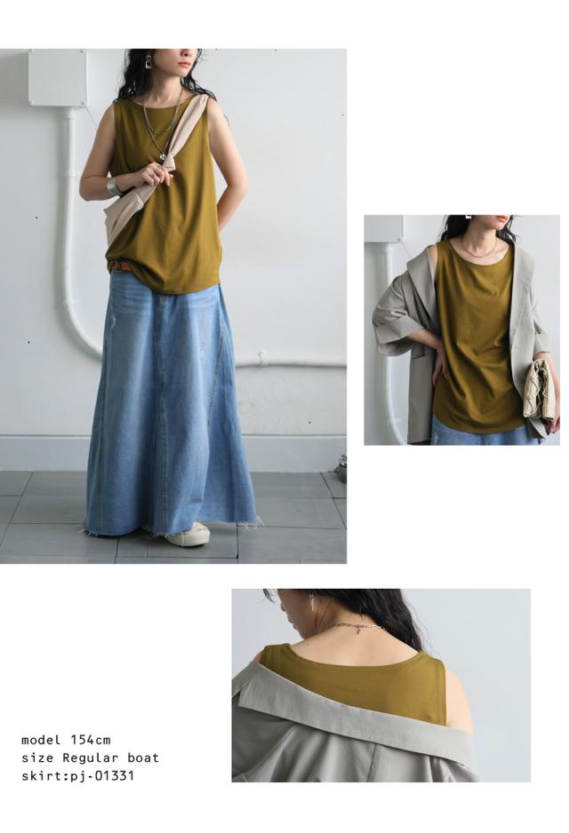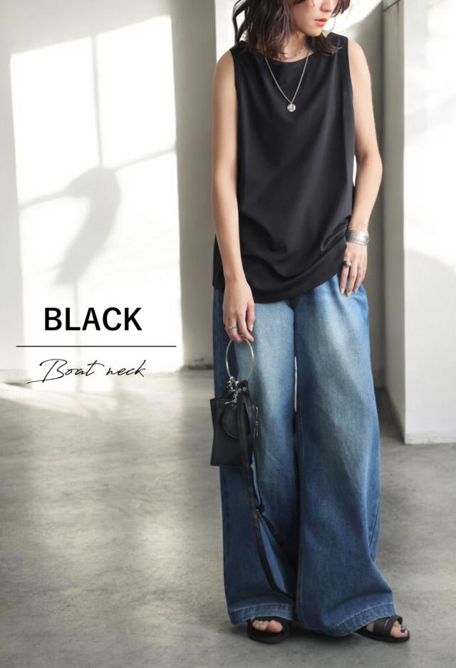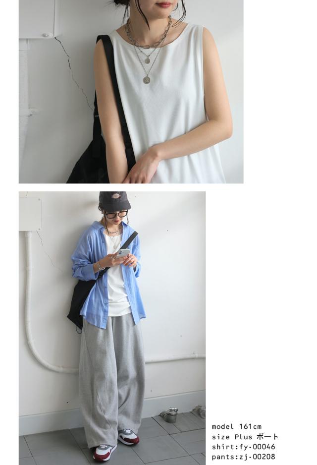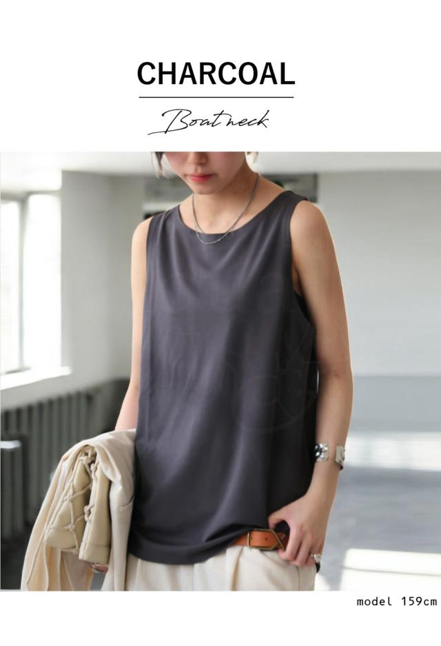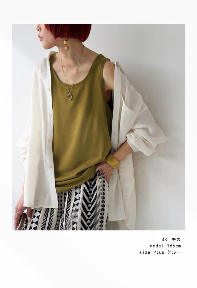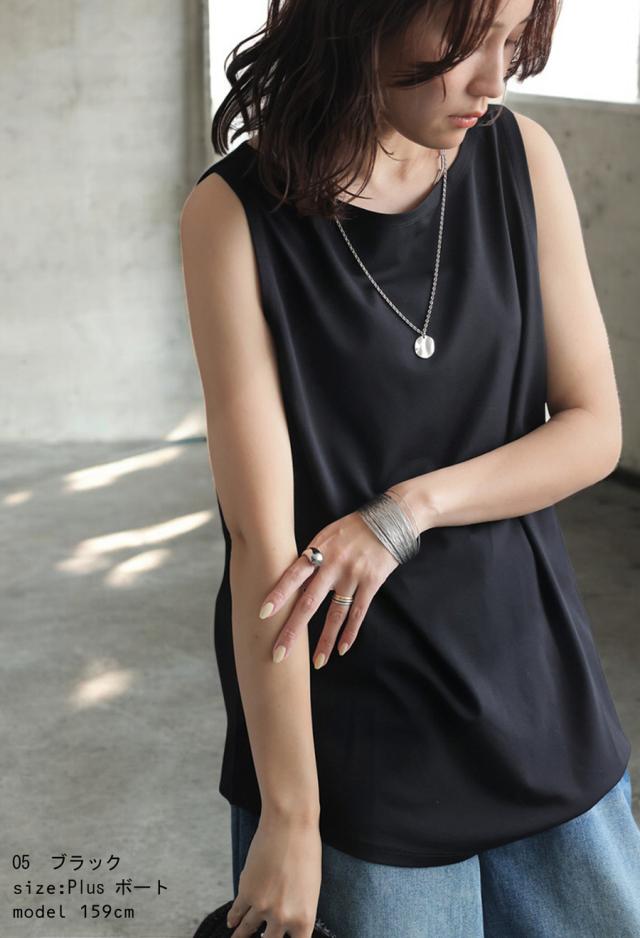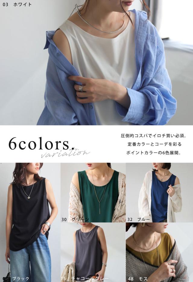 ay-00070z1 ノースリーブ インナー ラウンドネック ボートネック ゆったり レイヤード 重ね着 シンプル 長め丈 定番 着回し カラバリ豊富 大きいサイズ インナー レイヤードインナー