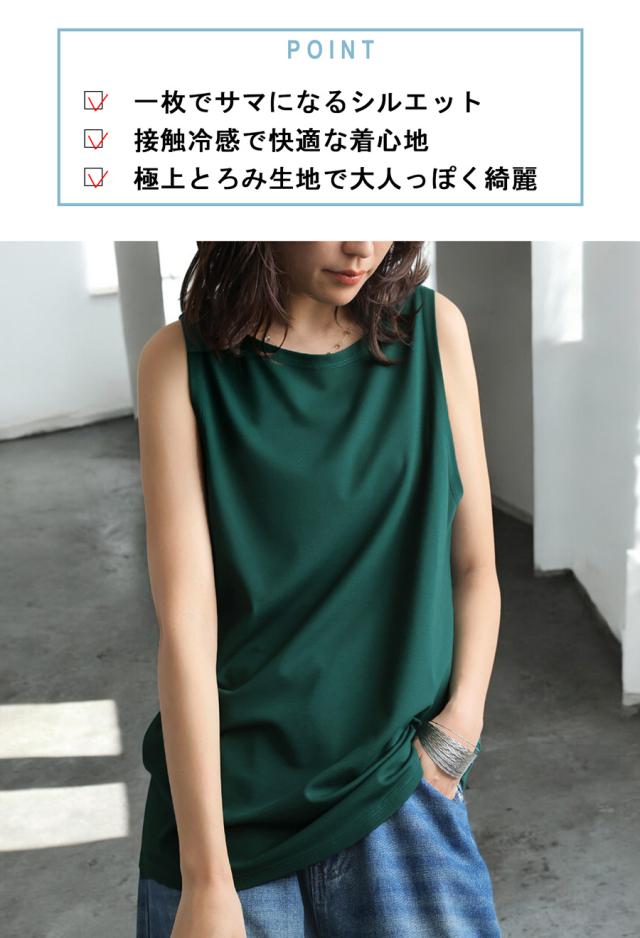 【検索ワード】接触冷感タンクトップ レディース トップス 接触冷感 無地 ノースリーブ インナー クルーネック ラウンドネック ボートネック ゆったり ラフ レイヤード 重ね着 シンプル 長め丈 上品 定番 着回し カラバリ豊富 大きいサイズ インナー レイヤードインナー 涼しい ひんやり とろみ 抜け感 コスパ イロチ買い ホワイト 白 ブラック 黒 チャコールグレー グリーン 緑 ブルー 青 モス サイズ展開 Regular Plus antiqua アンティカ 大人 おしゃれ 10代 20代 30代 40代 50代 60代 春 夏 お洒落 カジュアル かわいい かっこいい あんてぃか