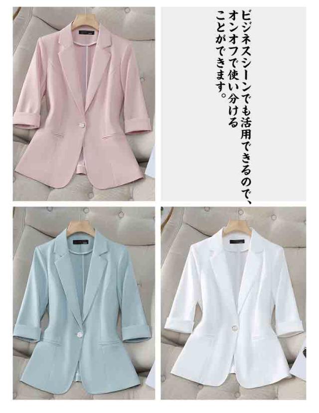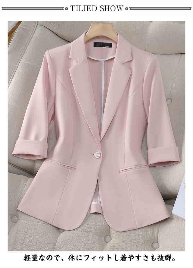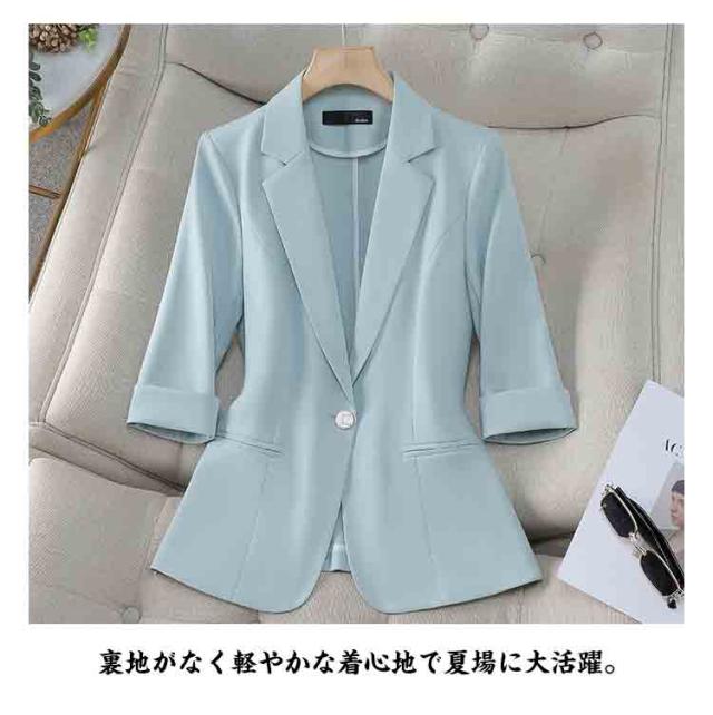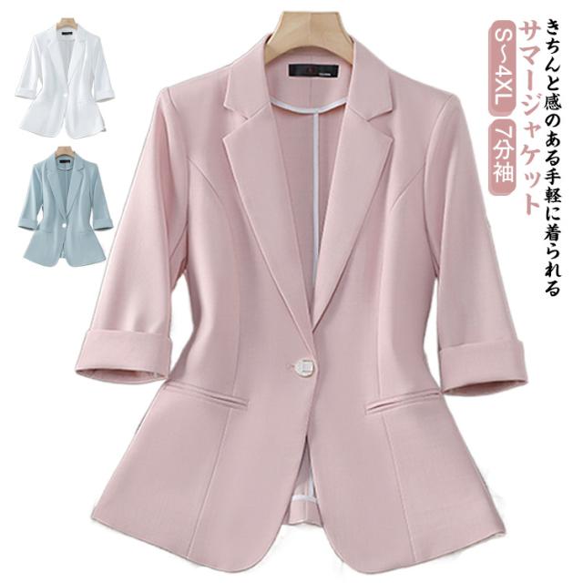 7分袖 テーラードジャケット 薄手 レディース ママスーツ スリム サマージャケット レディース ライトアウター セレモニー ビジネス 大人女性 春 夏 アウター 通勤 七分袖 オフィス フィット 大きいサイズ フォーマル 送料無料