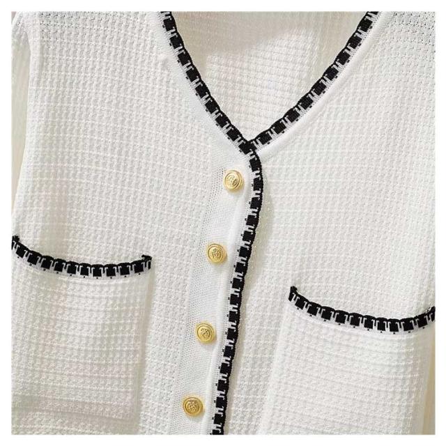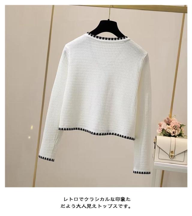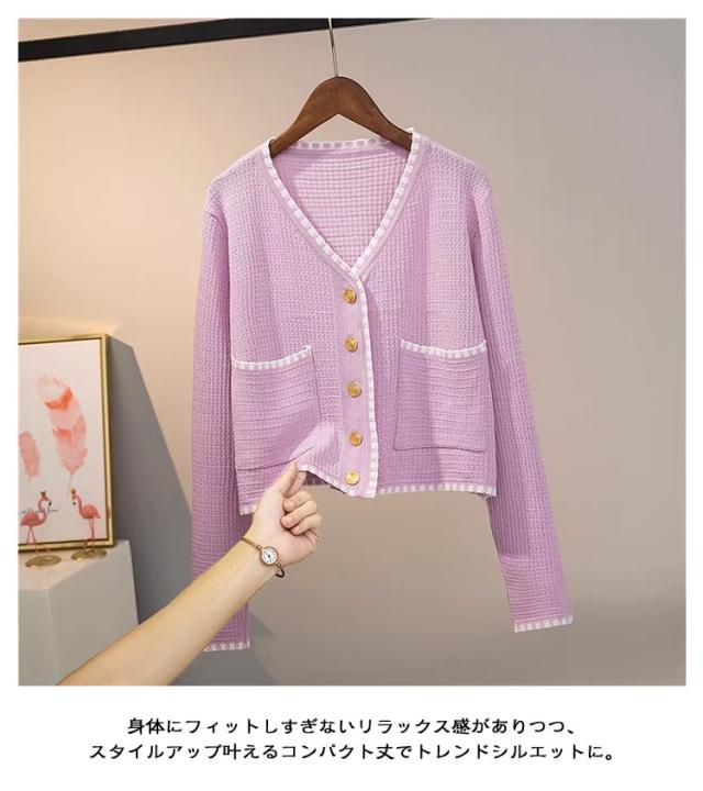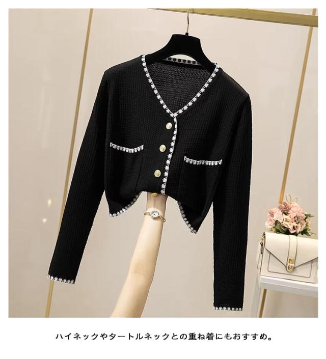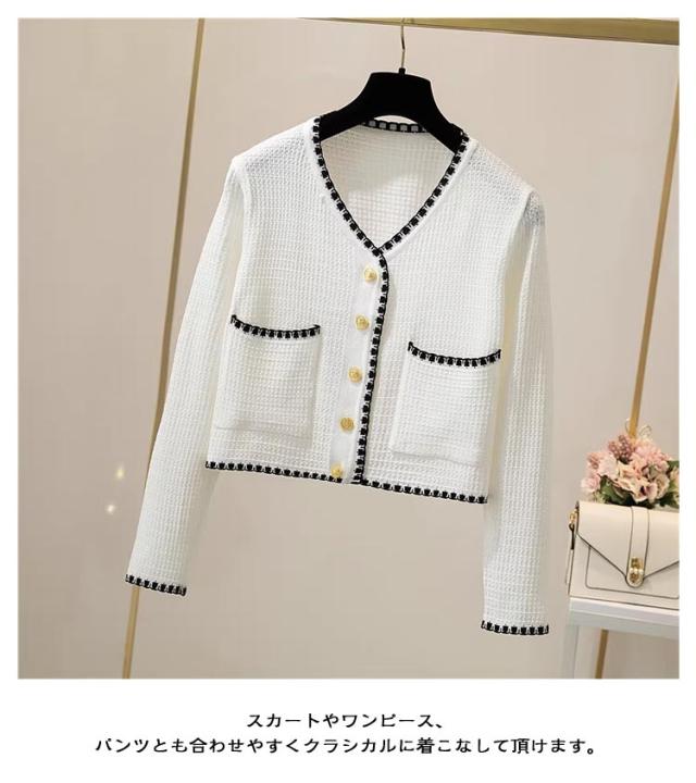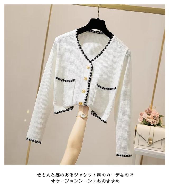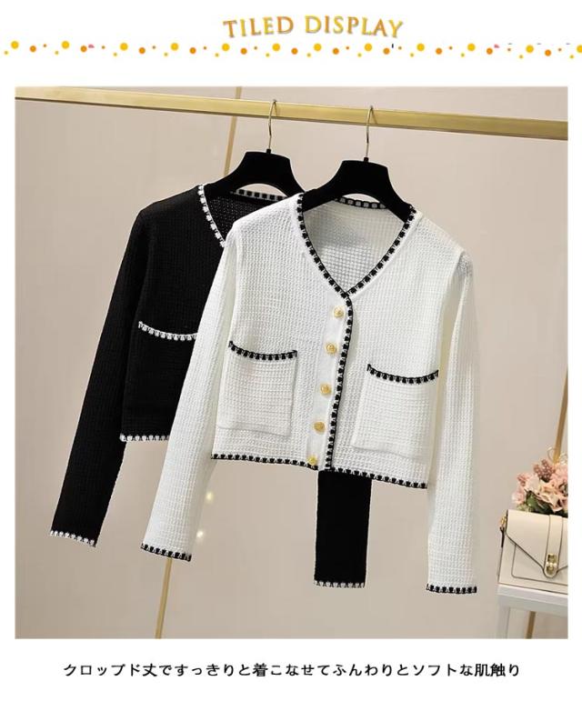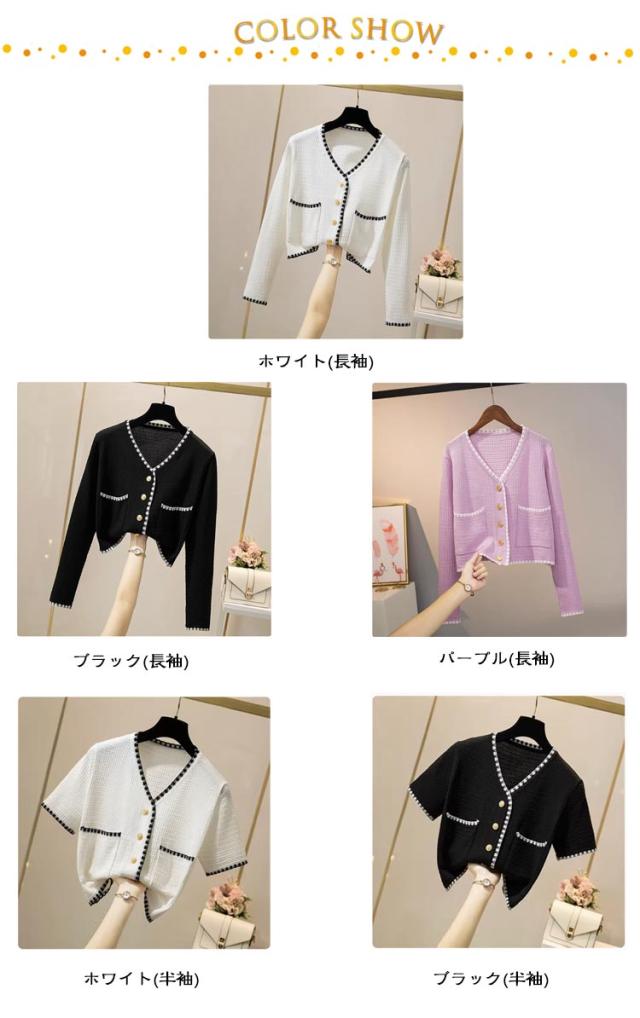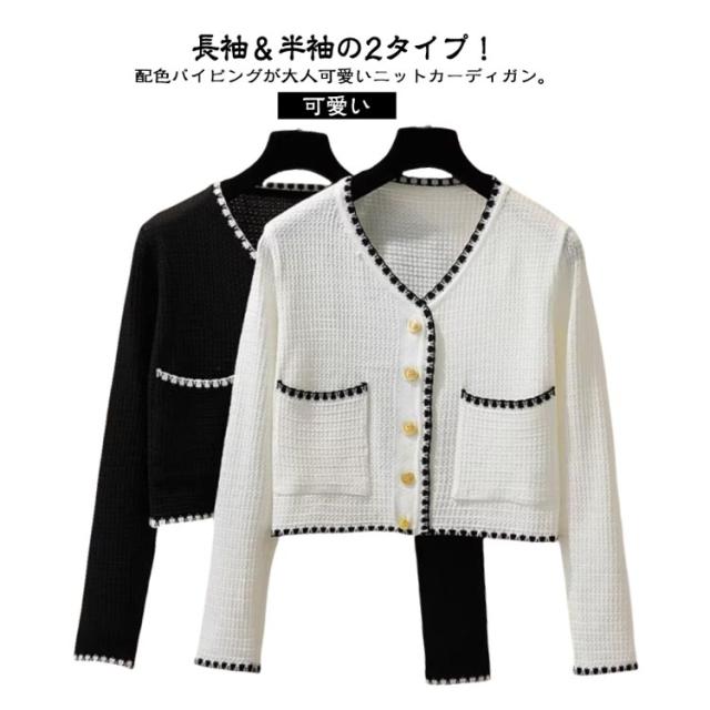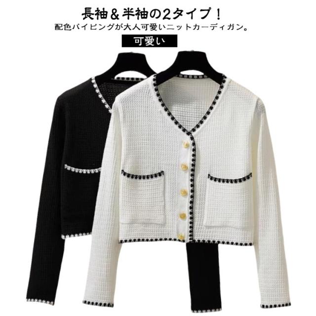 長袖&半袖の2タイプ パイピング ニット カーディガン レディース ニットカーディガン 長袖 ニット アウター 配色 パイピングニット クロップド 羽織 羽織もの 重ね着 オフィス 上品 高見え スタイルアップ ふわふわ 可愛い 韓国ファッション