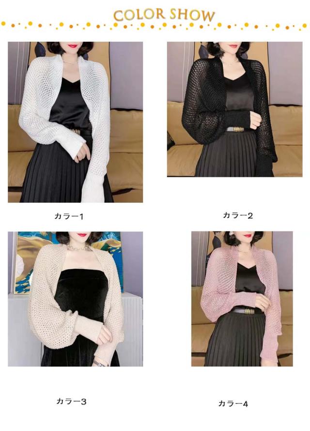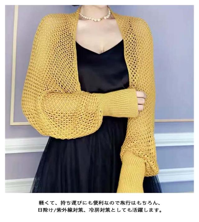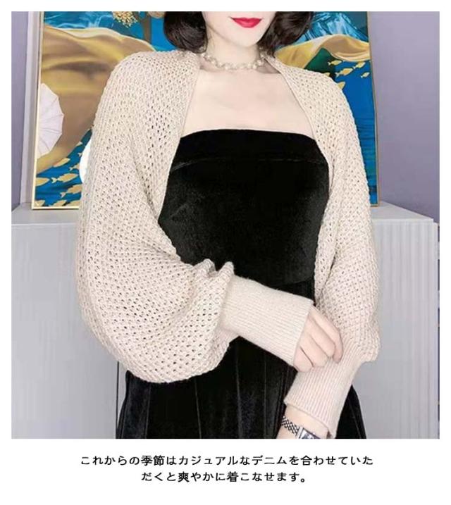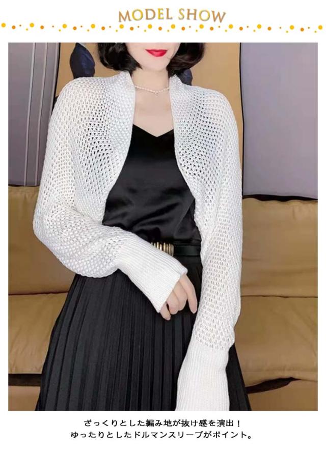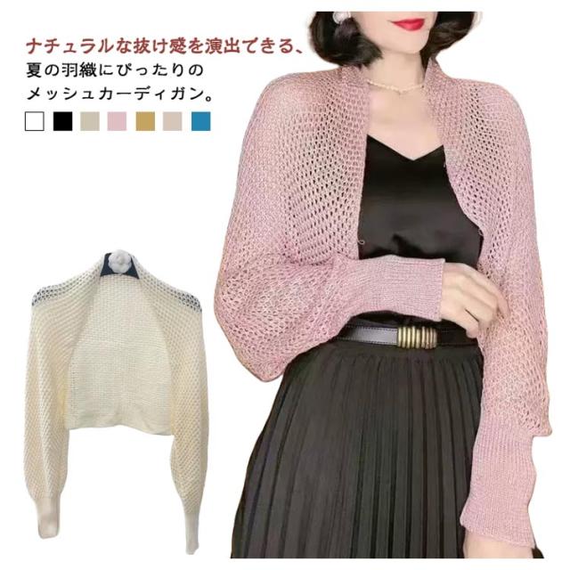 メッシュ ボレロカーディガン ボレロ ショート丈 クロップド丈 ボリューム袖 サマーニット メッシュ 透け感 薄手 ふんわり ボレロカーディガン ショートカーディガン 羽織もの かわいい トレンド おしゃれ きれいめ 羽織り 日除け 冷房対策 着回し