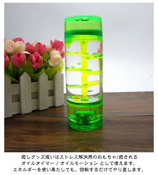 | スパイラル型のオイルタイマー。【2個セット】 カラフルな液体の泡がゆっくりと落ちるストレス軽減効果のあるオイルタイマーです。 癒しグッズ或いはストレス解消用のおもちゃ/癒されるオイルタイマー / オイルモーション として使えます。エネルギーを使い果たしても、回転するだけでやり直します。 書斎の本棚や窓際のスペース、キッチンのカウンターなど、オブジェとして飾るだけでも素敵な存在感です。 誕生日プレゼント、クリスマス、友人、恋人への贈り物としてもオススメです。特に好奇心旺盛の子供にも喜ぶおもちゃでしょう。 | |