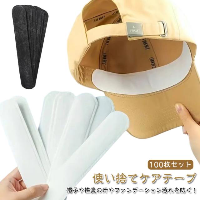 100枚セット 使い捨て 帽子 汚れ防止 テープ ケアテープ ファンデーション 防止 簡単 貼るだけ 汚れ防止シート 帽子ケアテープ メンズ レディース 帽子テープ 汚れ防止テープ 汗対策 メイク 抗菌 防臭 シャツ 襟 お洒落 【送無】