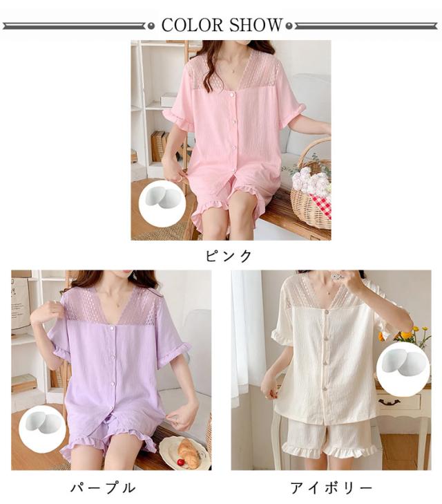 カップ付き パジャマ セットアップ レディース 半袖 Tシャツ ショートパンツ 2点セット 薄手 涼感 夏 韓国ファッション ルームウェア 上下セット カジュアル 半袖 短パン 寝巻き ナイトウェア 可愛い パジャマ 部屋着 リラックス 大きいサイズ 寝間着 送料無料