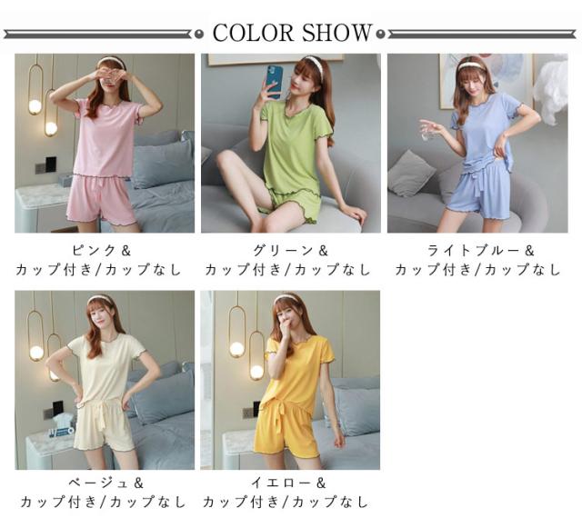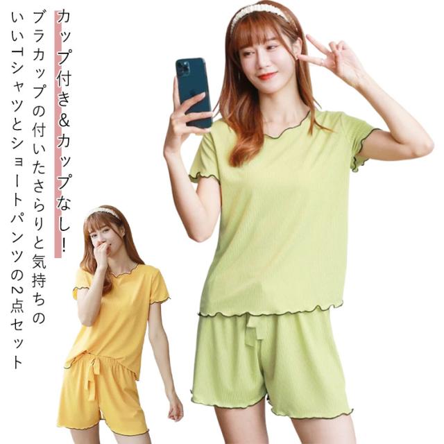 パジャマ ルームウェア カップ付き 半袖 レディース 夏 上下セット 可愛い 2点セット 柔らかい ハーフパンツ ナイトウェア 寝間着 部屋着 寝巻き 無地 ショートパンツ 夏 セットアップ 夏用 春 パンツ 薄手 涼しい 入院 出産 修学旅行 ゆったり プレゼント 送料無料