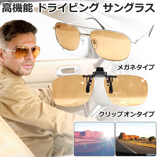 高機能 ドライビング サングラス‐運転用 調光レンズ 偏光レンズ メンズ レディース 朝日対策 西日対策 サクサン 眼鏡タイプ クリップオン クリップ ドライブ用 日本製