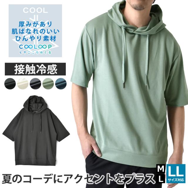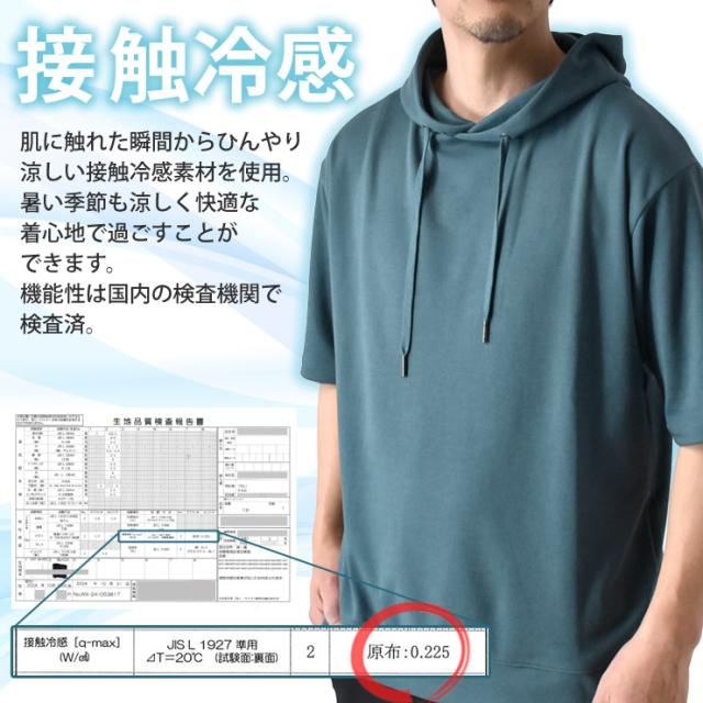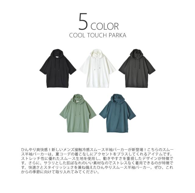 接触冷感 ストレッチ スムース 半袖 パーカー【D4E】