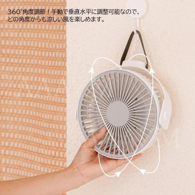 扇風機 小型 おしゃれ 吊り下げ 卓上 壁掛け扇風機 アウトドア サーキュレーター DCモーター USB充電 LEDライト 2段ベッド テント キャンプ 夏用 暑さ対策グッズ