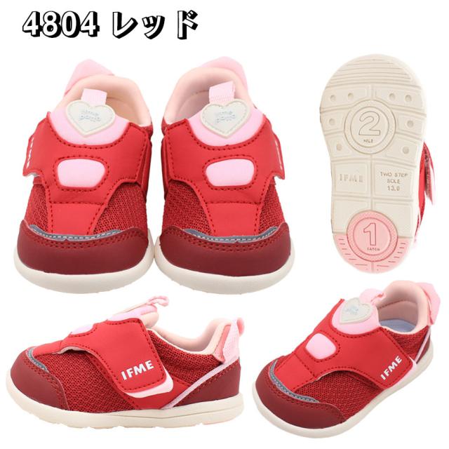IFME イフミー 靴 4804 キッズ シューズ ベビー 赤ちゃん 女の子 マジックテープ スニーカー 運動靴 ファーストシューズ レッド 赤 パープル 紫