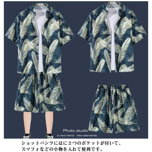 | カラフルな柄もシックな色合いもボタニカル柄で季節感を感じるコーディネートに! カラーは6TYPE、サイズはM〜3XLまで幅広くご用意しております。 アメリカ西海岸のロサンゼルスを彷彿させるヤシの木の総柄デザインが、 春夏のヒップホップスタイルに欠かせません。 今ゆとりがあるので着脱簡単/動きやすいハワイ半袖Tシャツ2点セット!軽量で、柔軟性もあって、着用心地はよく、さっぱりした感じ!長時間履いても締め付け感ゼロ! ボトムスはウェストゴムのデザインで、ストレスのない着心地を感じます。ショットパンツにはに2つのポケットが付いて、スマフォなどの小物を入れて便利です。 | |