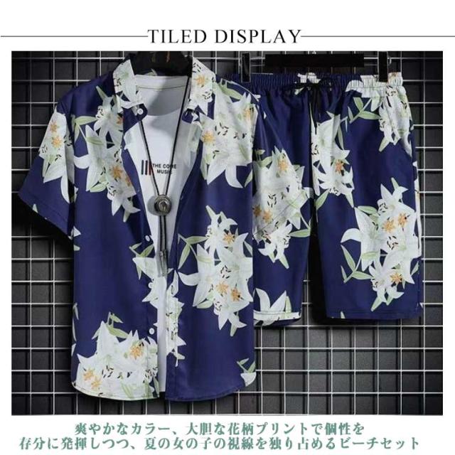 アロハシャツ 上下セット ハーフパンツ 上下セット セットアップ 夏服 半袖シャツ アロハシャツ カジュアル 旅行 ルームウェア アロハ 半袖 部屋着 花柄 おしゃれ ショートパンツ ハワイ リゾート メンズ ビーチ 夏用 大きいサイズ 軽い 父の日 プレゼント