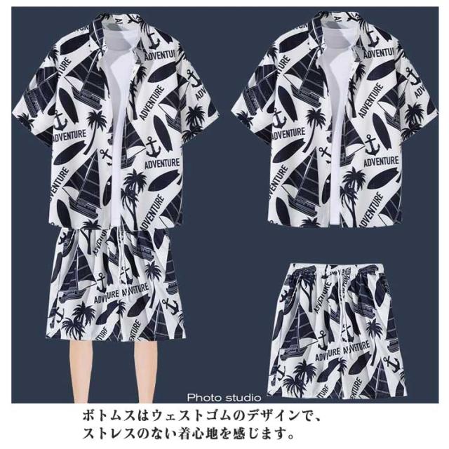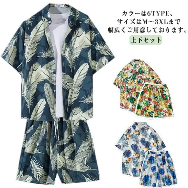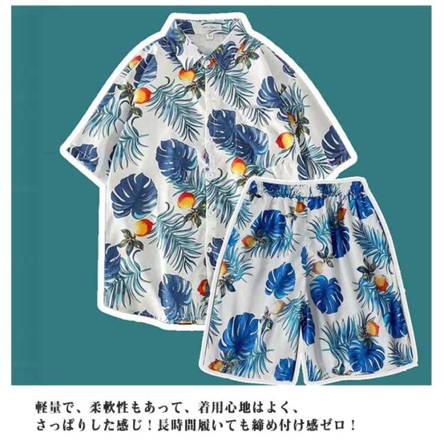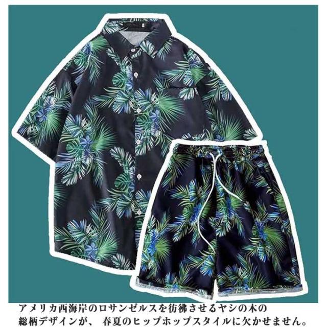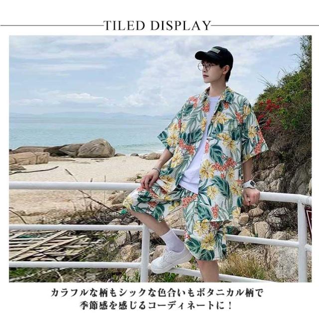 アロハシャツ アロハ 花柄 上下 アロハ 柄シャツ 上下セット 短パン ビーチシャツ 半袖 ショートパンツ メンズ 夏 総柄 カジュアルウェア 部屋着 おしゃれ アロハ柄 夏服 膝上 ボタニカル柄 夏 アロハ ファッション 花火 リゾート 連休 旅行