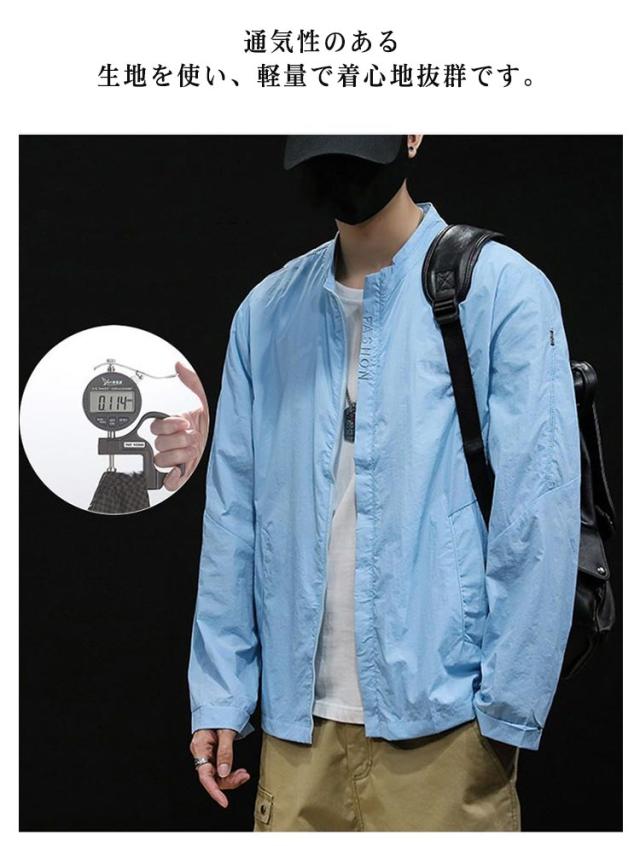吸汗 メンズ 接触冷感 コート 薄手 フードなし ラッシュパーカー ジャケット 涼しい UVカット 長袖 冷房対策 速乾 立ち襟 夏用 通気性 紫外線対策 日焼け防止 ジャンパー 無地 軽量 カジュアル ブルゾン 接触冷感 大きいサイズ アウトドア ひんやり