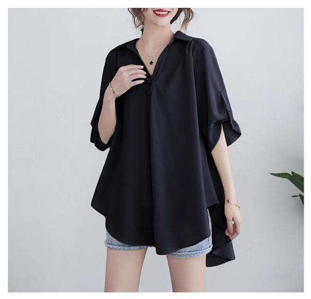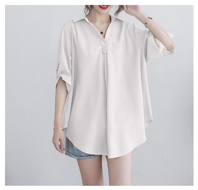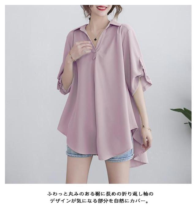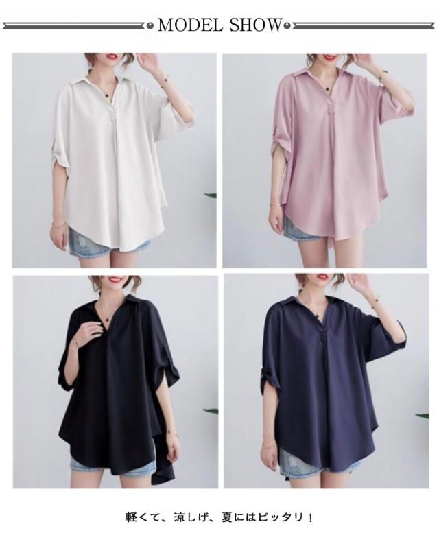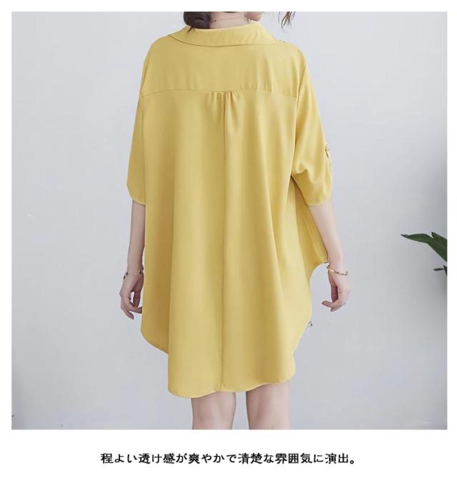 レディース シアー トップス ロング ブラウス 夏 半袖シャツ チュニック 半そで シャツ 半袖 ブラウス 春夏 二の腕カバー お尻が隠れる スキッパー ドルマン レイヤード ゆったり 無地 シルエット 体型カバー きれいめ 大きいサイズ シャツブラウス カジュアル