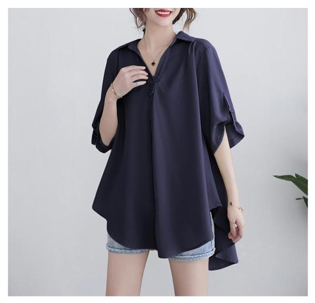 | 肌にくっ付かない、肌ざわりの優れる半袖シャツ。 軽くて、涼しげ、夏にはピッタリ! 全体的なフレアふんわりAラインシルエットもかわいい、お尻をカバーしてくれる。歩くたびにゆれる〜 とろみ素材で落ち感もあり、ふんわりと身体に馴染む上質な生地感。 程よい透け感が爽やかで清楚な雰囲気に演出。 ふわっと丸みのある裾に長めの折り返し袖のデザインが気になる部分を自然にカバー。 | |