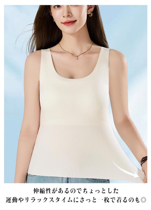 ストレッチ レディース カップ付き タンクトップ ブラトップ ノースリーブ トップス 伸縮性 下着 接触冷感 無地 タンクトップ パッド付 肌着 普段着 インナー ルームウェア 締め付けない 重ね着