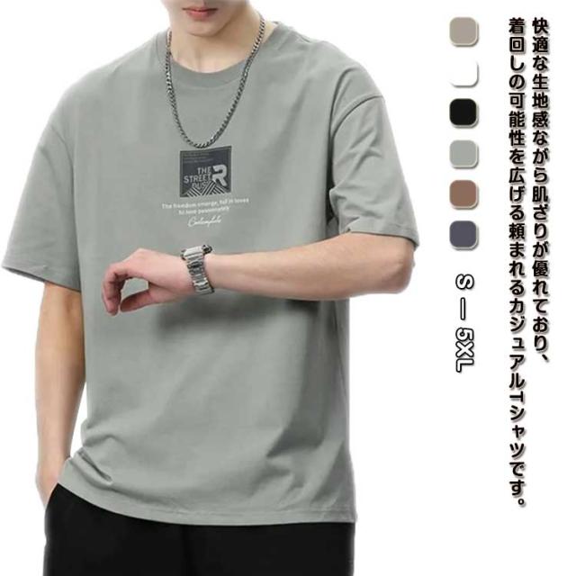 半袖tシャツ メンズ クルーネック 大人 夏服 プリント 半袖tシャツ アメカジ オーバーサイズ トップス 大きいサイズ ゆったり ストリート カジュアル カットソー ビッグシルエット 韓国 ファッション