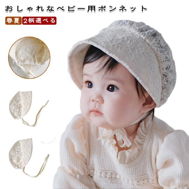 ベビー帽子 レース 2柄選べる 夏用 ハット ベビー帽子 ボンネット 女の子 日よけ 日除け つば広 赤ちゃん 春夏 日よけ 日除け ベビー レース ホワイト