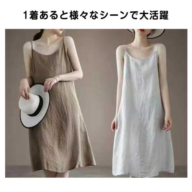 レディース 春 ロング キャミ ペチコート インナー 綿麻 ワンピース 夏 レディース 秋 キャミソールワンピース カジュアル キャミワンピ ワンピ下 透け防止 ナチュラル コットン
