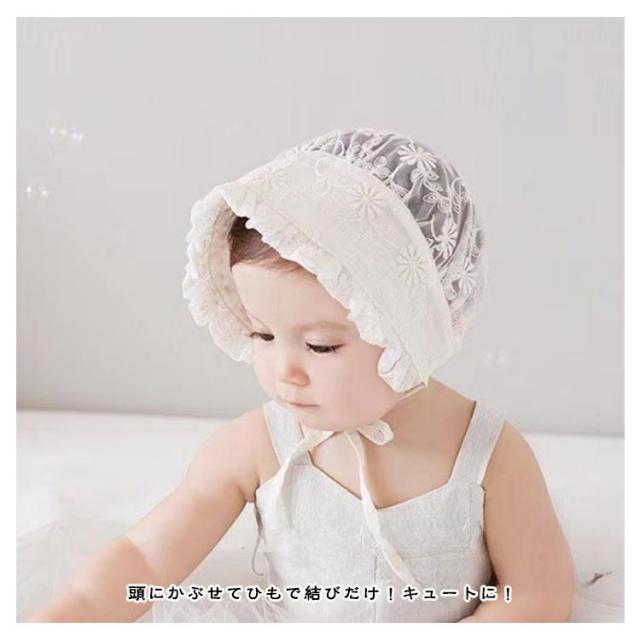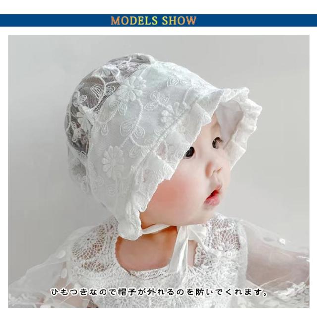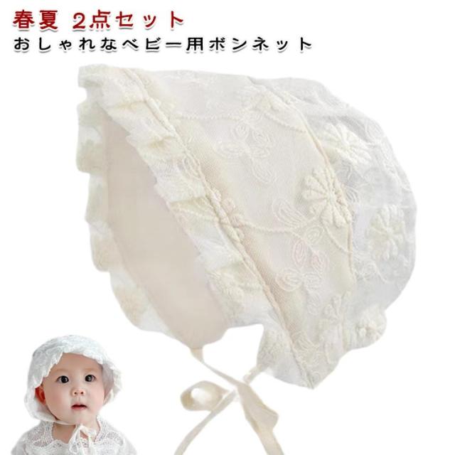 ベビー帽子 2点セット 春夏 夏用 キャップ 赤ちゃん 女の子 日除け 日よけ つば広 ボンネット ハット 日よけ 日除け ベビー レース ホワイト レース 無地