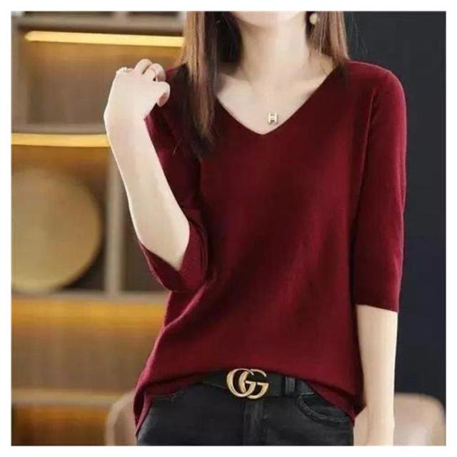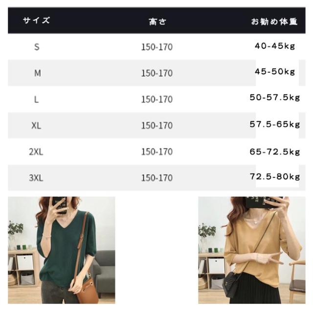 | シンプルでゆったりとした着こなしがおしゃれな5分袖ニットです。 Vネックデザインがネックラインを強調します 快適な柔らかい生地 春夏は外着として、秋冬はインナーとして着用できます | |
