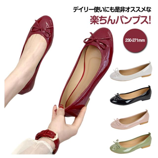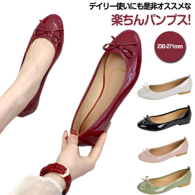 リボン パンプス 大きいサイズ 歩きやすい ラウンドトゥ 疲れない ローヒール バレエシューズ フラットシューズ 柔らかい フォーマル 走れる 痛くない 立ち仕事 通勤 外反母趾 パンプス 丸いつま先 入学式 黒 ブラック 幅広 入園式 冠婚葬祭