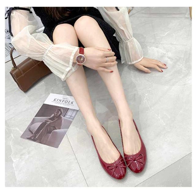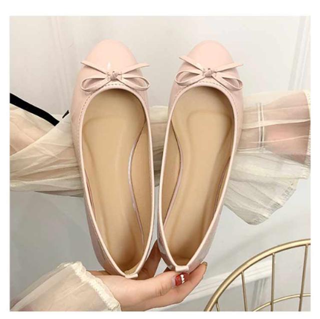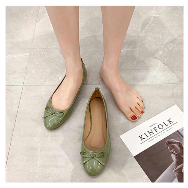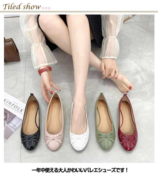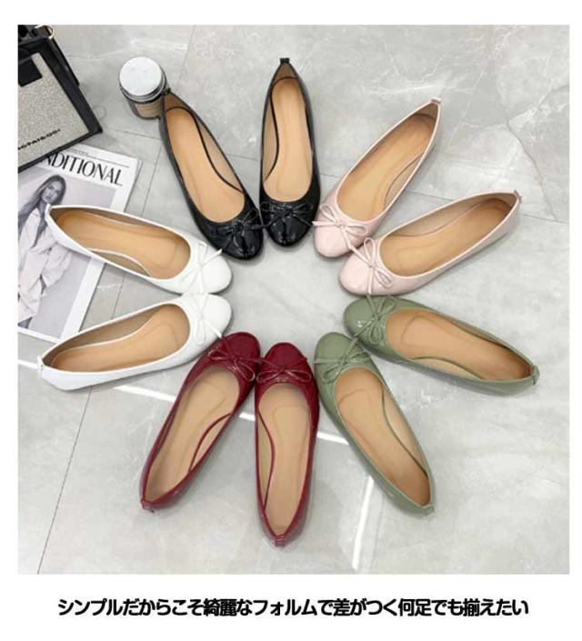 | デイリー使いにも是非オススメな楽ちんパンプス!柔らか素材で履き心地良く、ぺたんこソールなのに大人可愛い! コロンと丸いつま先に、ちょこんと品良くついたリボンは大人の女性でも 取り入れやすい媚びない愛らしさ!! シンプルだからこそ綺麗なフォルムで差がつく何足でも揃えたい 一年中使える大人かわいいバレエシューズです! | |