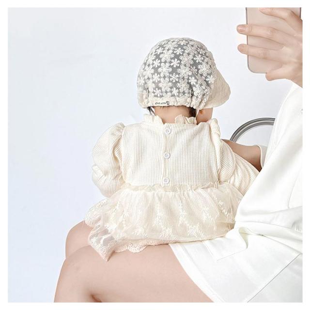 ベビー帽子 ベビー帽子 2柄選べる 夏用 ボンネット レース 日除け 女の子 日よけ 赤ちゃん つば広 春夏 ハット 日よけ 日除け ベビー レース ホワイト