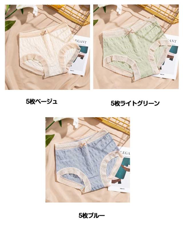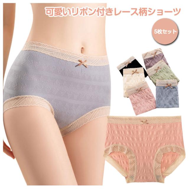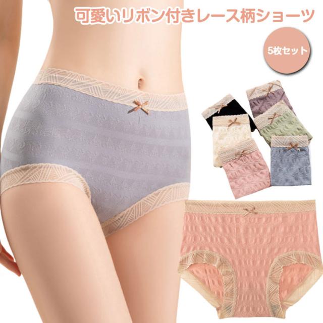 レースショーツ ストレッチ レディース 【5枚セット】リボン 下着 【5枚セット】リボン レース 響かない 伸縮性 通気性 快適 シンプル 速乾性 無地 アンダーウェア かわいい