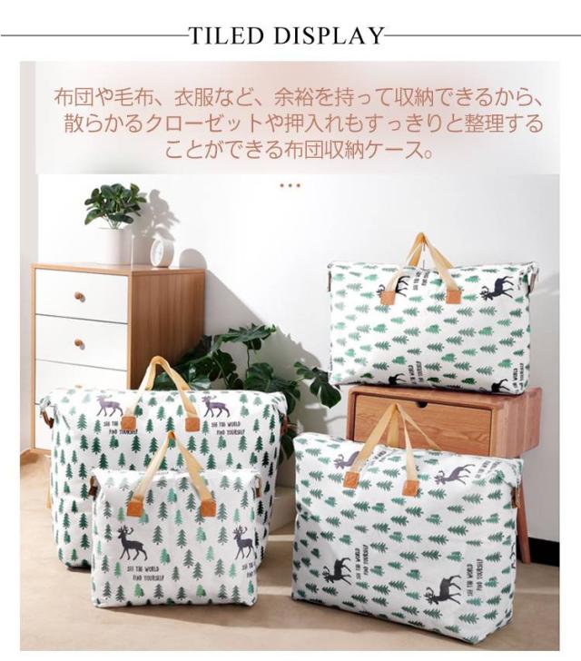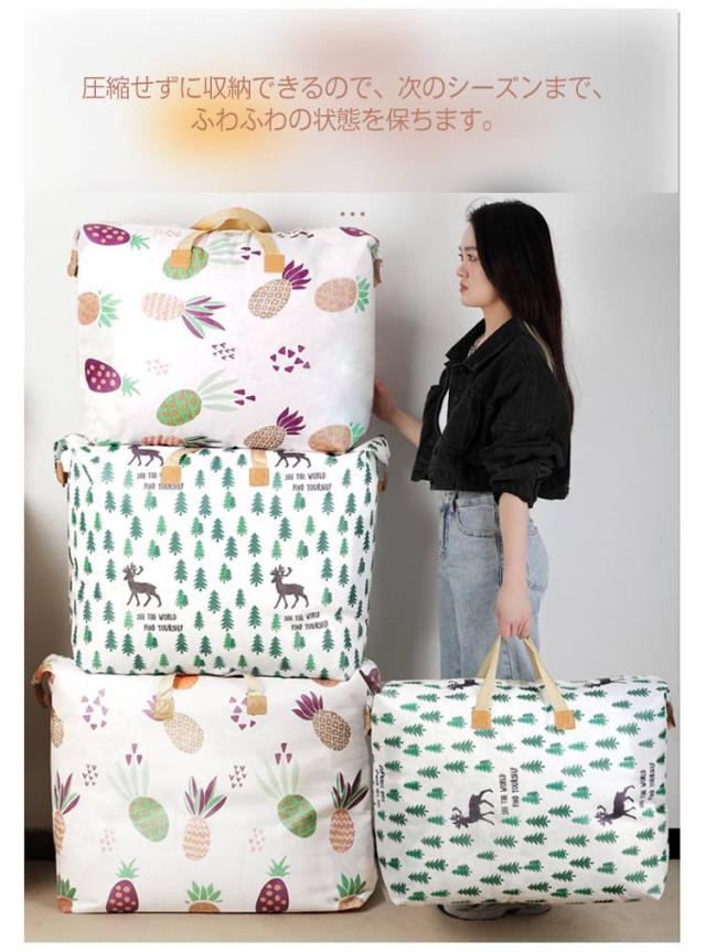 | 出し入れ便利・防水防塵の大容量布団収納袋。 35L 48L 85L 120L 布団や毛布、衣服など、余裕を持って収納できるから、散らかるクローゼットや押入れもすっきりと整理することができる布団収納ケース。 圧縮せずに収納できるので、次のシーズンまで、ふわふわの状態を保ちます。 衣類はもちろん、毛布、布団、キルト、羽毛布団、掛け布団、綿毛布、全ての種類簡単に収納できます。さらに、持ち手付きでラクラク移動できる収納ボックス。 厚くて丈夫な高品質不織布を採用し、防水コーティングが施されており、防水防湿機能が優れているため、湿気や水から中身をしっかりと守ります。 | |