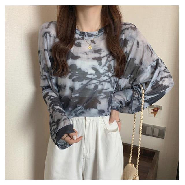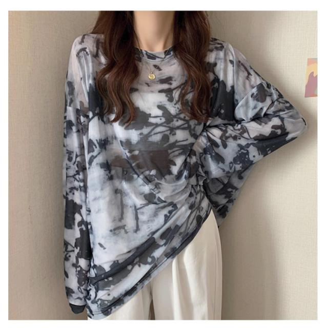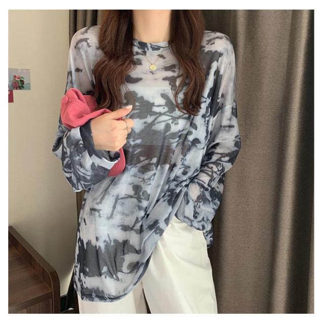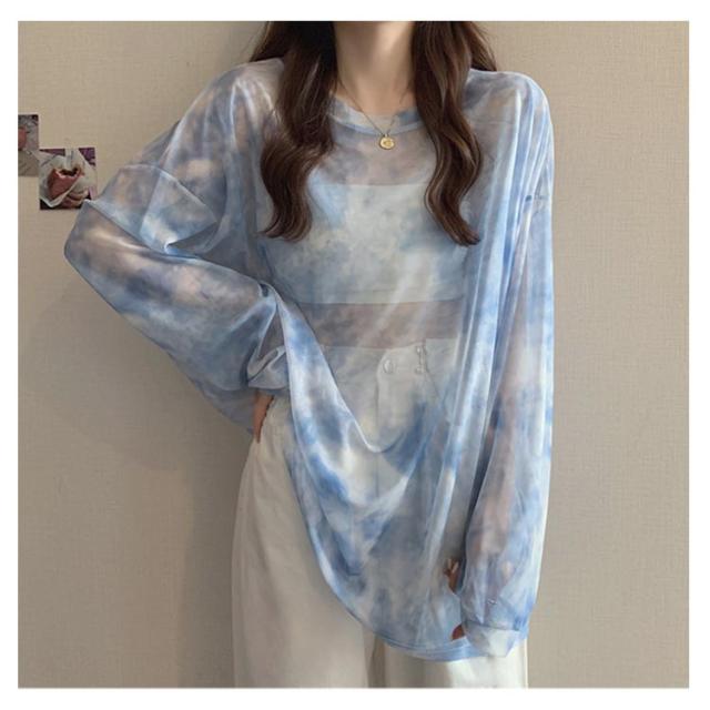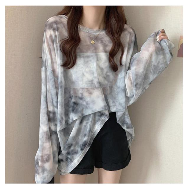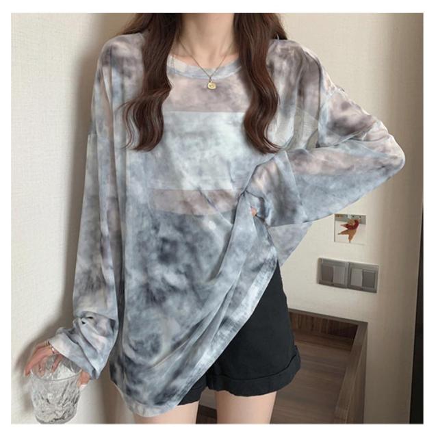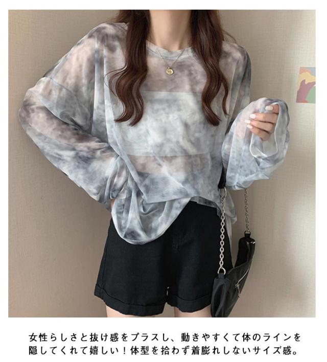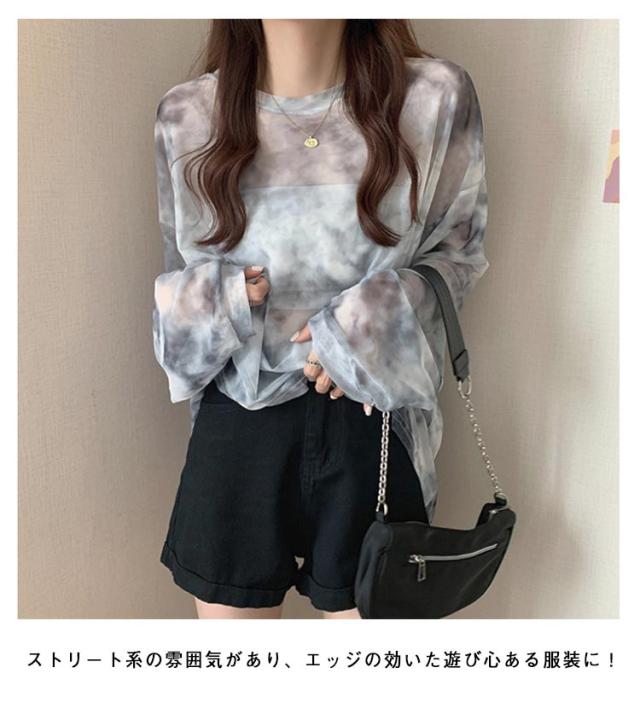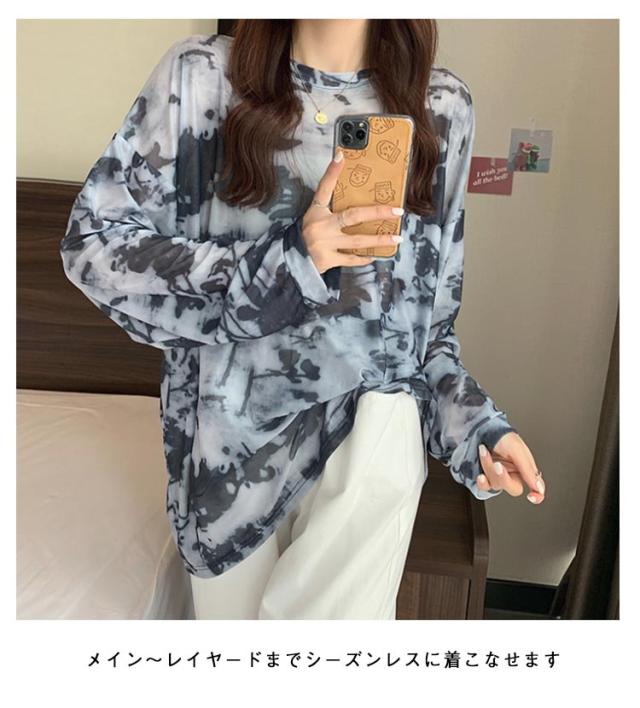 ロンT 春夏 レディース 重ね着 カットソー 長袖 タイダイ柄シアーシャツ 軽い シアーブラウス シアートップス シースルー 透け感 無地 チュニック シアートップス UV 紫外線 大きいサイズ ビッグシルエット オーバーサイズ