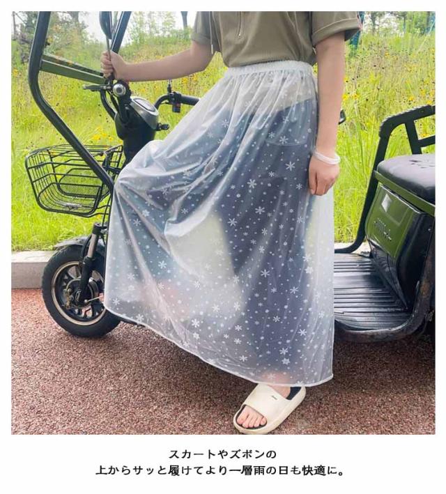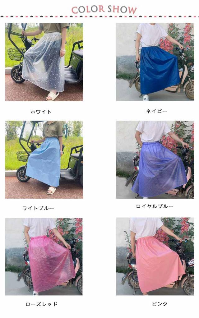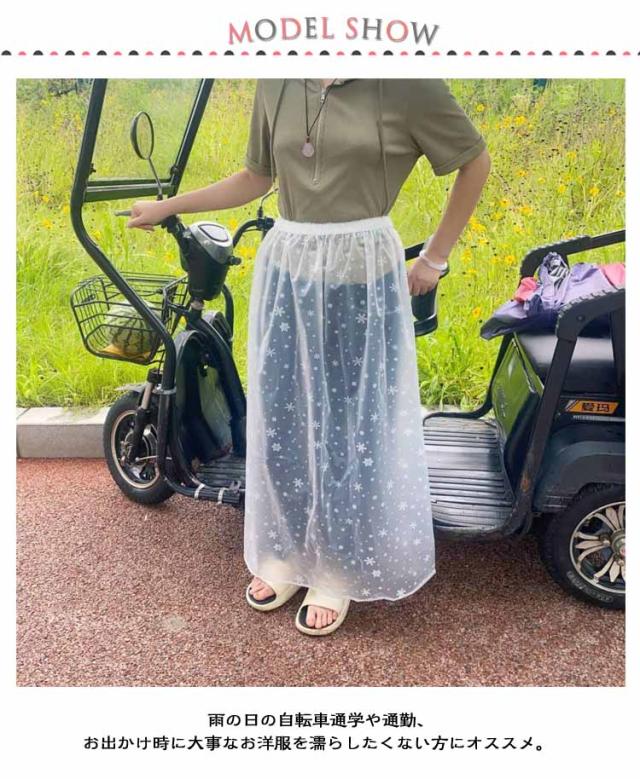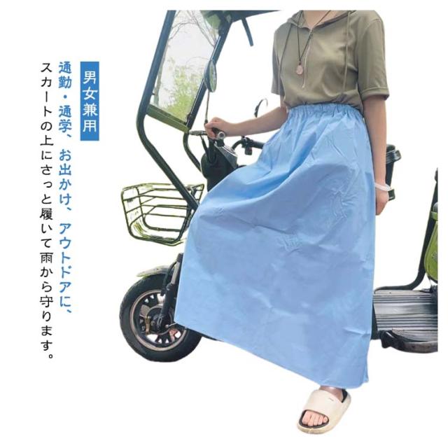 | 通勤・通学、お出かけ、アウトドアに、スカートの上にさっと履いて雨から守ります。 雨の日の自転車通学や通勤、お出かけ時に大事なお洋服を濡らしたくない方にオススメ。 スカートやズボンの上からサッと履けてより一層雨の日も快適に。 洋服の上からサッと装着できるので学生さんやアウトドアシーンにオススメ。 シンプルなデザインなので女性だけでなく、男性の方もユニセックスでお使いいただけます。 | |