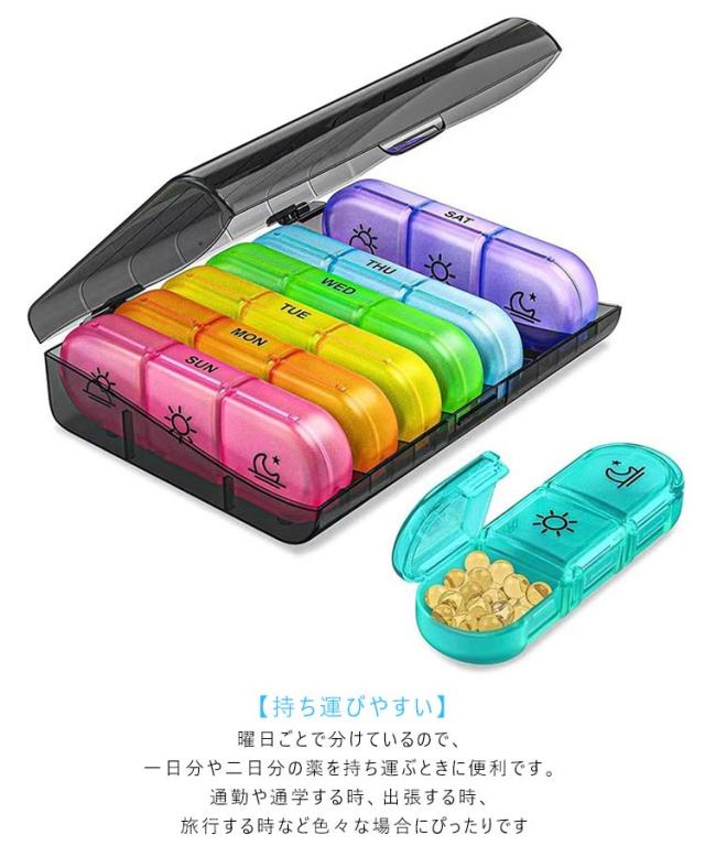 大容量 小型 ピルケース 携帯用 サプリメントケース 薬ケース 1日3回 持ち運び サプリケース 薬入れ ピルケース 1週間 薬入れケース お薬ケース くすりの保管 飲み忘れ防止 携帯 仕切り 付き サプリメントケース