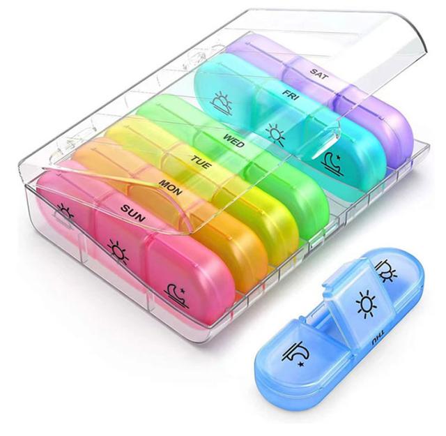 | 【丈夫なロック仕様】開け閉めがロック仕様で他の商品と比べると割れにくいです。 【一目で分かる鮮やかな色】毎日の色が違うので分別しやすい、飲み間違いしないです。 【飲み忘れ防止】タイプいろいろ1週間ピルケースです! 【持ち運びやすい】曜日ごとで分けているので、一日分や二日分の薬を持ち運ぶときに便利です。通勤や通学する時、出張する時、旅行する時など色々な場合にぴったりです。 【箱をまとめるストラップ付き】何日分を持ち運びたいとき、かばんの中でバラバラにしないです。 | |