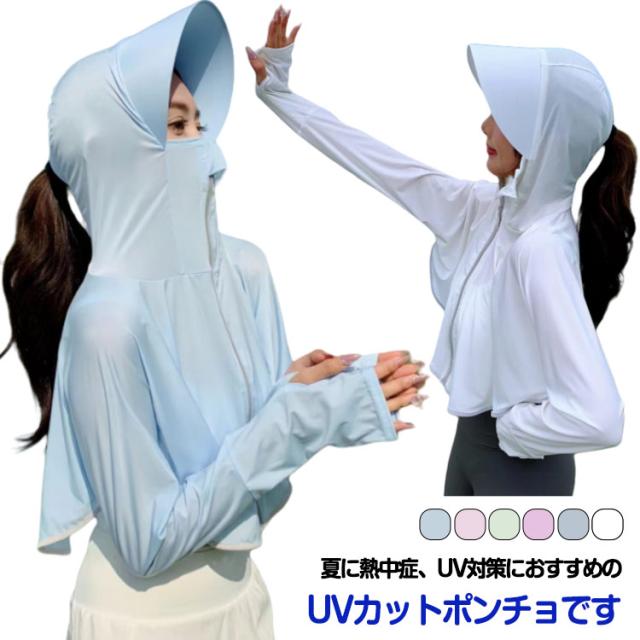 | 夏に熱中症、UV対策におすすめのUVカットポンチョです。 冷感素材の薄手生地を使用したUVカット! 顔周り360℃紫外線対策!鼻先まであがるファスナー付きでマスクも不要。 指穴付きの袖口で手の甲、手の平もしっかりカバー。 吸水通気!スポーツやアウトドアや通勤の際に簡単に紫外線対策が可能。 速乾性も優れて、肌触りがサラサラしています。 薄くて軽い素材なので持ち運びの際にかさばりません。 年々暑くなる気象にも、強い日差しにも負けない。 | |
