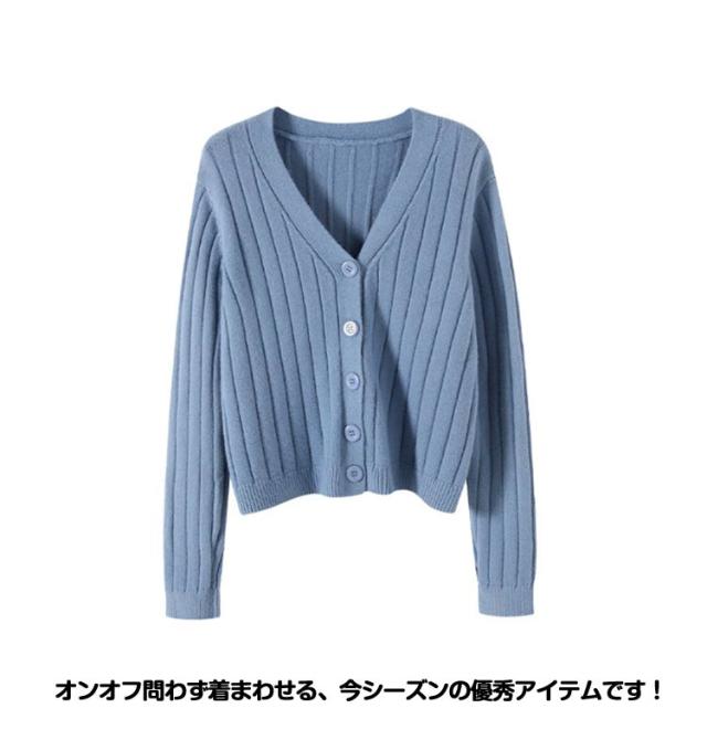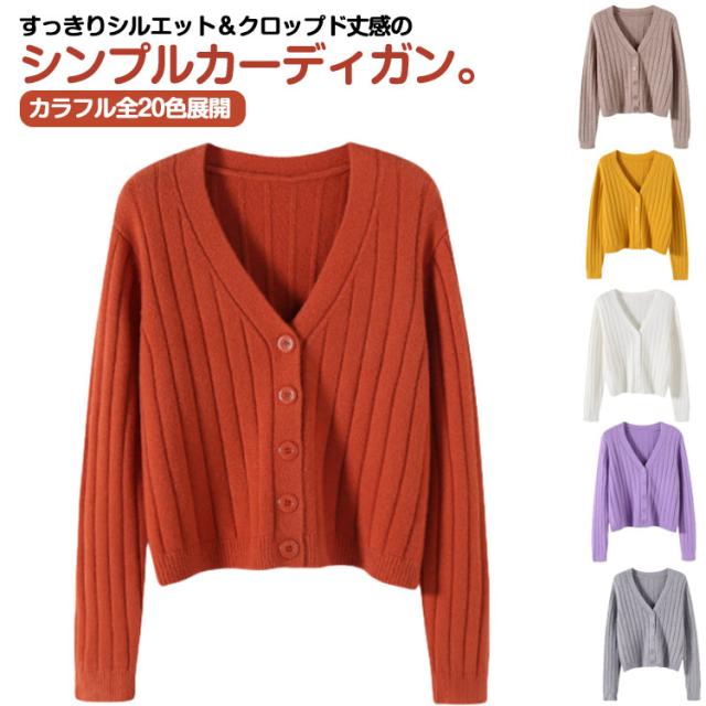 リブニット カーディガン ニットカーディガン ニット セーター カラフル全20色展開 長袖 レディース カラフル全20色展開 トップス カーデ Vネック 軽い ライトニット レイヤード 羽織り ニットセーター シンプル 制服 ニット スクール
