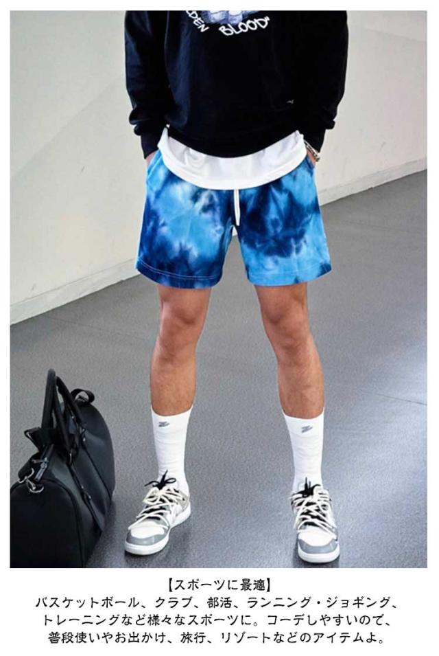 ズボン 短パン タイダイ風 メンズ バスパン おしゃれ バスケパンツ バスケ ショートパンツ ハーフパンツ 膝上 バスパン スポーツ バスケットボール ランニング トレーニング 運動着 バスパン ジュニア 運動会 体育祭 通気