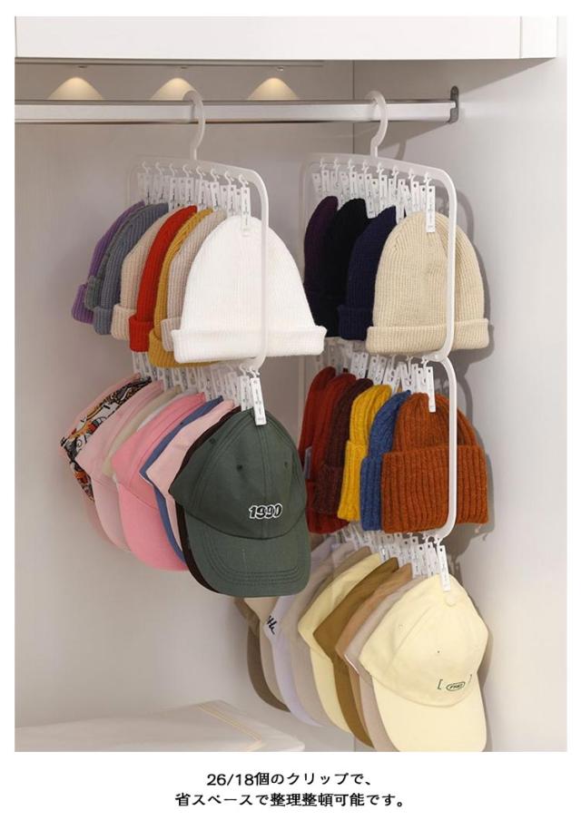 帽子 ハンガー 3段 キャップ 2段 クリップ26個 収納 ハンガー クリップ26個 帽子かけ 帽子掛け 収納フック 洗濯ハンガー 洗濯バサミ クローゼット 収納 帽子ラック 帽子ハンガー 18個クリップ 小物収納 収納フック オシャレ