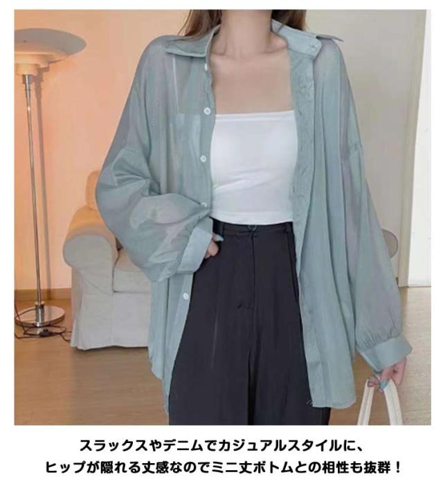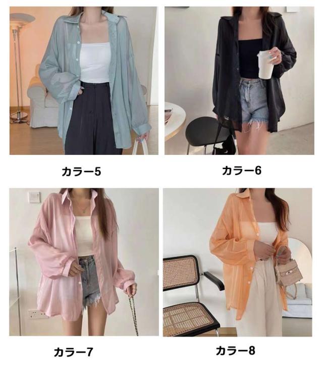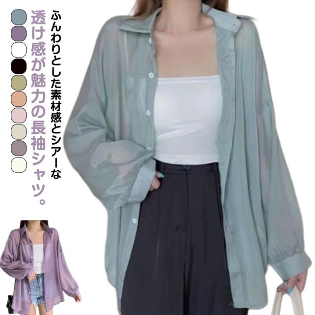 透け カラフル全10色展開 シアー ブラウス レディース カラフル全10色展開 シアートップス 長袖 シアーシャツ 春 夏 羽織り 重ね着 オーバーサイズ シンプル カジュアル おしゃれ ゆったり 体型カバー 日焼け対策 羽織 夏物