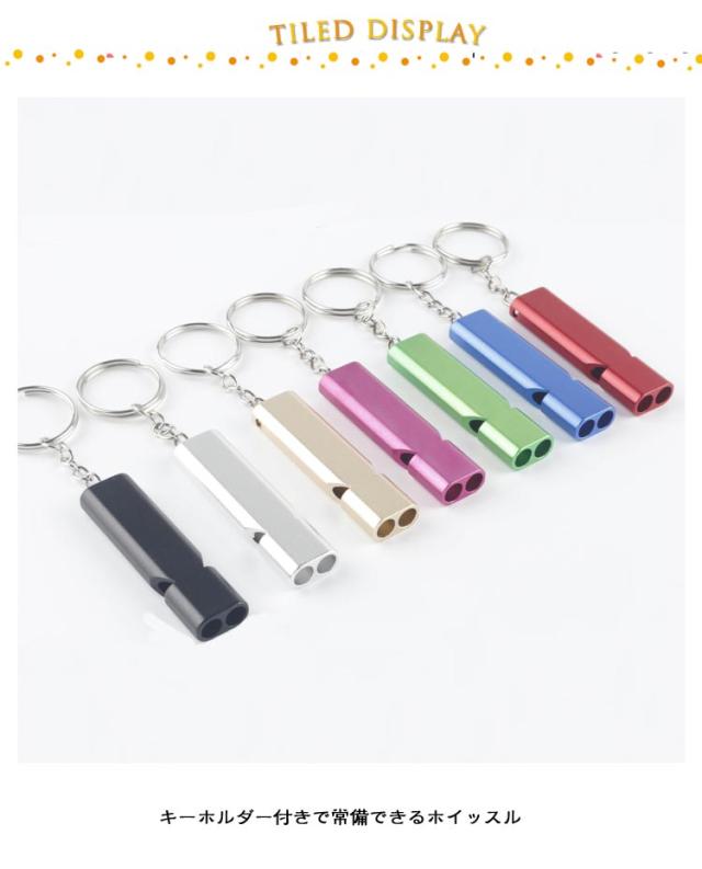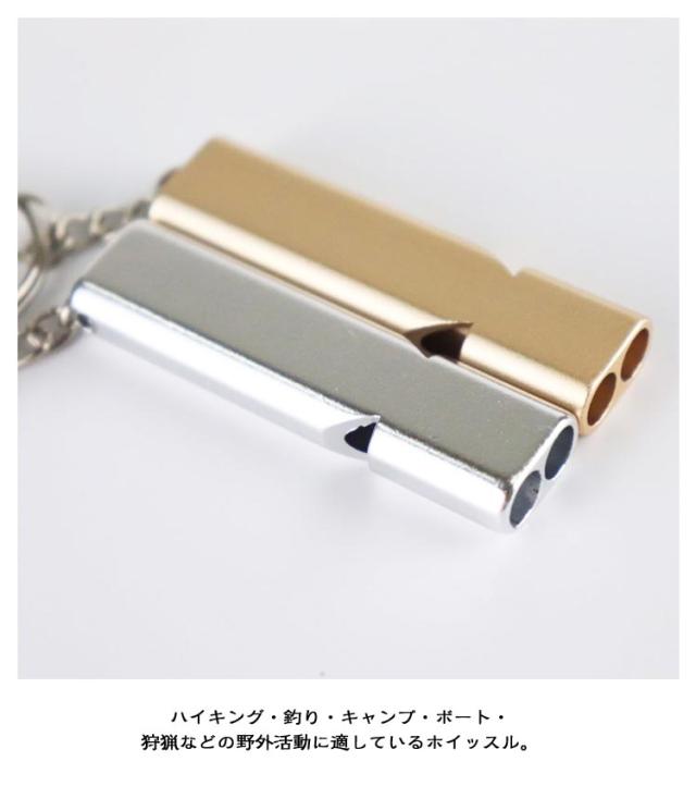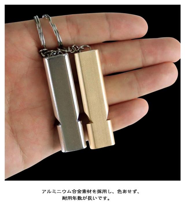 | ・120dbの大音量で災害や防犯時に大音量で周囲に知らせる緊急用ホイッスルです。 ・キーホルダー付きで常備できるホイッスル ・アルミニウム合金素材を採用し、色あせず、耐用年数が長いです。 ・二重管ホイッスルは吹きやすく、サウンドパワーは120デシベルで、長距離でも十分な音量が得られます。 ・ハイキング・釣り・キャンプ・ボート・狩猟などの野外活動に適しているホイッスル。 | |
