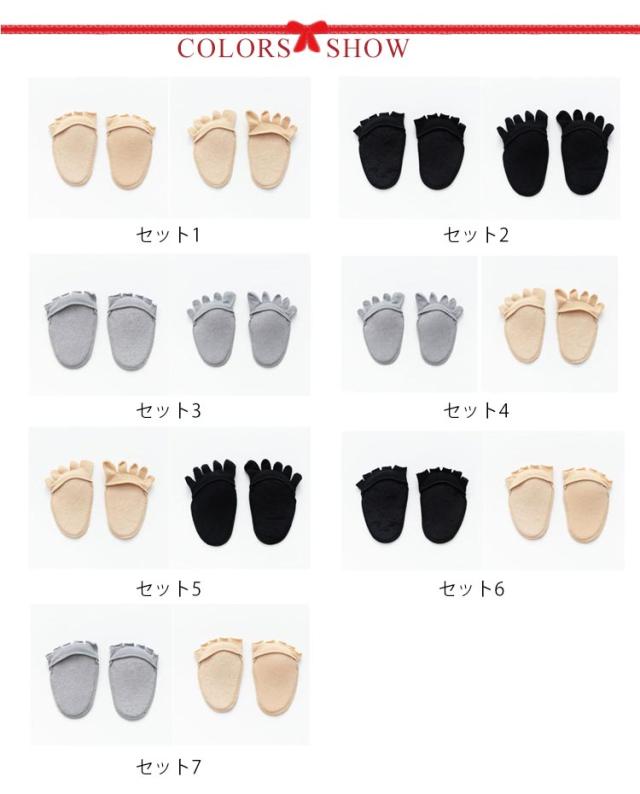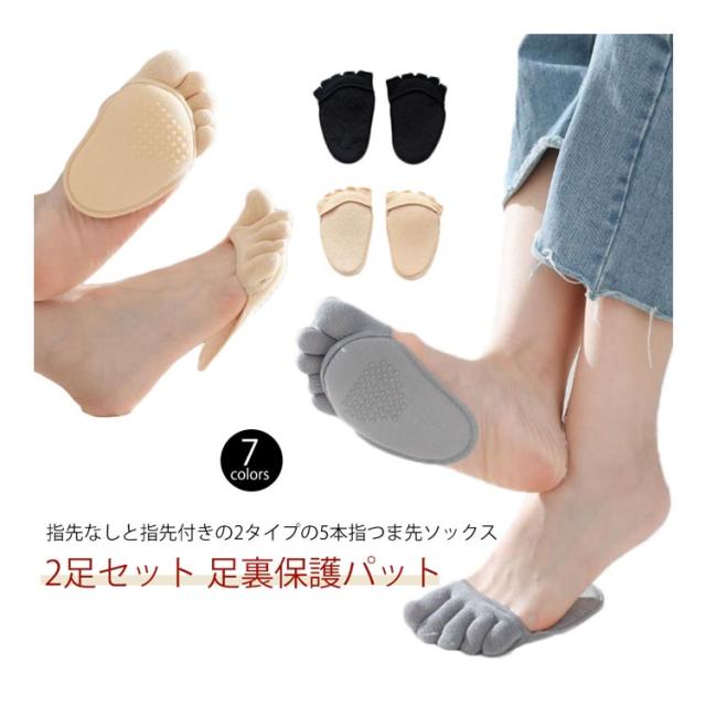 足裏保護パット フットカバー 指先なし つま先靴下 指先付き パンプス レディース フットカバー 歩きやすい ミュール 2足セット つま先カバー サンダル つま先ソックス 蒸れない ソックス パッド付き 5本指 脱げない 吸汗性 衝撃吸収 滑り止め インナーソックス
