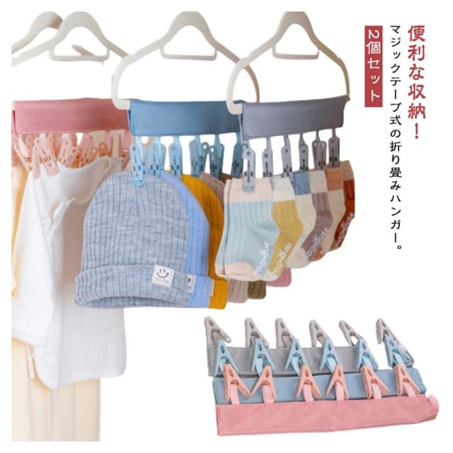 2個セット 帽子ハンガー 省スペース 12クリップ 洗濯ハンガー 収納 洗濯バサミ ハンガー 帽子収納 携帯ハンガーマジックテープ式 帽子 クローゼット 折り畳み キャップ キャップホルダー 旅行用 家庭用 折りたたみ 部屋干し