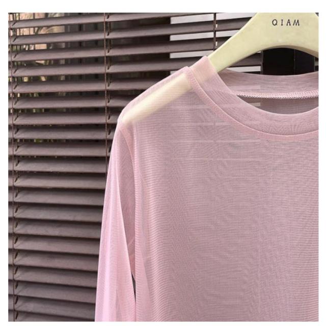 Tシャツ シアーカットソー 薄手 ビーチ レディース カバーアップ ビーチ ラッシュガード 体型カバー プルオーバー 水着 長袖 ゆったり 露出少なめ 日焼け防止 シースルー シアー 肌見せ 大きいサイズ 重ね着 UV対策 春夏 春