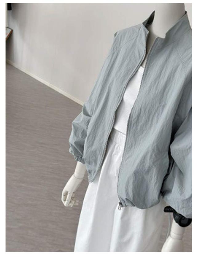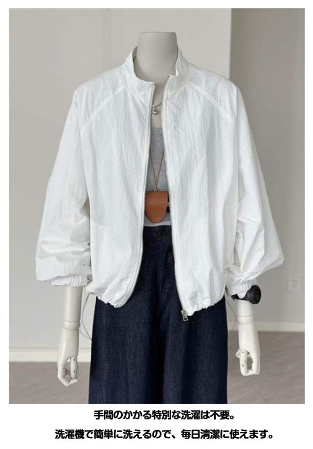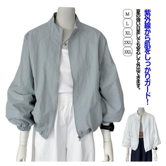 日焼け止めUVカット 夏服 UVカット 薄手 シワ加工 袖ボリュームパーカー UV対策 軽量 通気性 レディース グレーブルー UVパーカー パーカー 春夏 ショート丈 ジャケット ラッシュガード 紫外線対策 ブルゾン 日焼け止めUVカット ホワイト