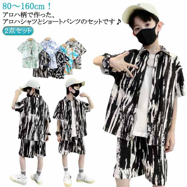 子ども セットアップ 上下セット アロハシャツ セットアップ 80cm 半袖シャツ ジュニア 子供服 子供用 キッズ 男の子 ハーフパンツ 女の子 ベビー服 ショートパンツ 春夏 リゾート 海 ビーチ 旅行 ギフト 総柄 90cm 100cm 110cm 120cm 130cm 140cm 150cm