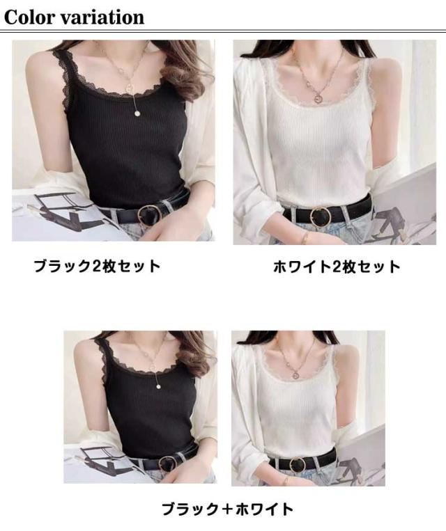レース トップス リブ 下着 インナー レディース 綿 2枚セット キャミソール 2枚セット レイヤード チラ見せ 無地 重ね着 シンプル 薄い タンクトップ 女性 大きいサイズ オールシーズン