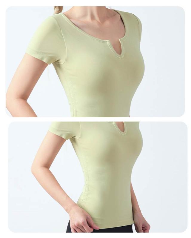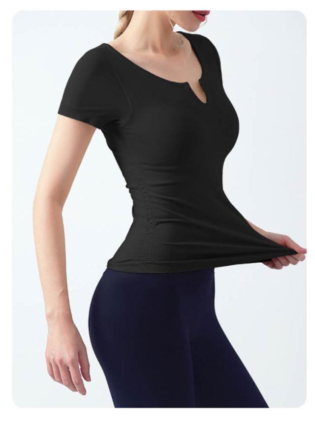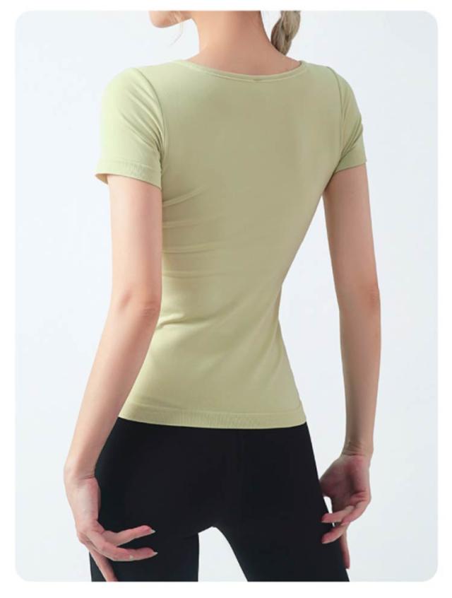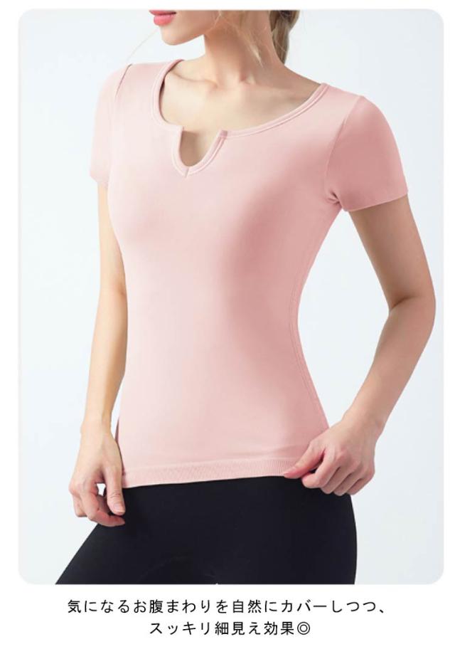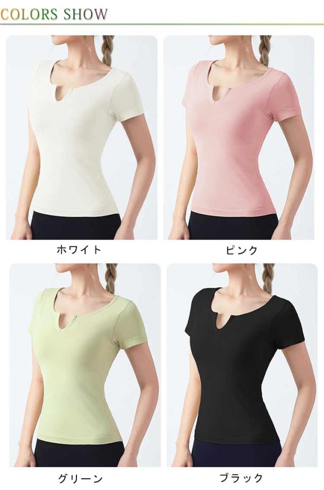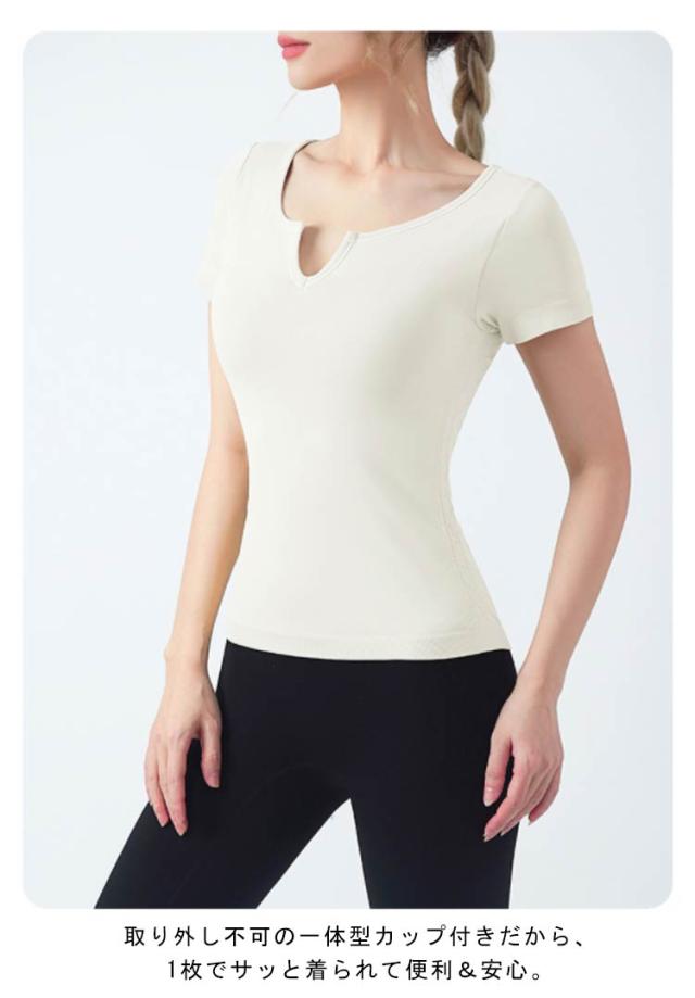 半袖 半袖 ヨガウェア ストレッチ カップ付き ヨガ 通気性 トップス シンプル 伸縮性 ピラティス トレーニング 吸汗速乾 ギャザー レディース フィットネス スポーツ ジムウェア ブラック