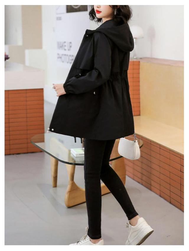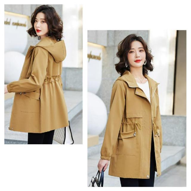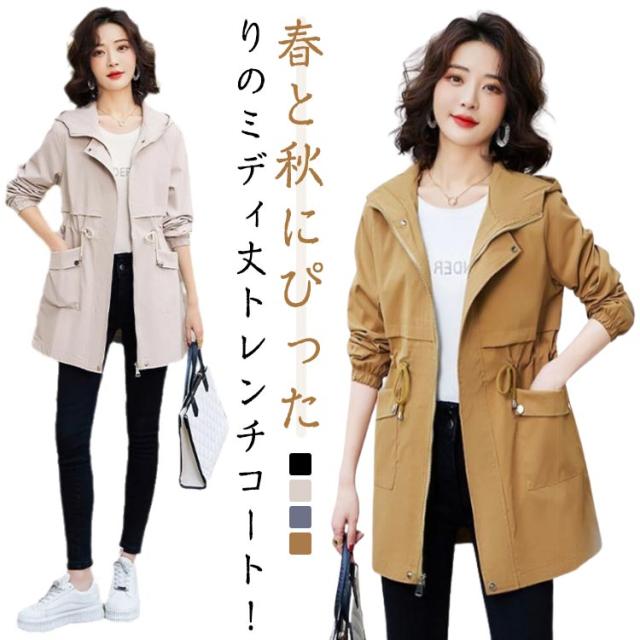 シルエット調整 トレンチコート 薄手 春秋 レディース スリム トレンチコート ウエスト調整 大ポケット ミディ丈 シンプル フード付き 無地 快適 大人 Hライン 肌触り ゆったり カジュアル 引き紐 通勤